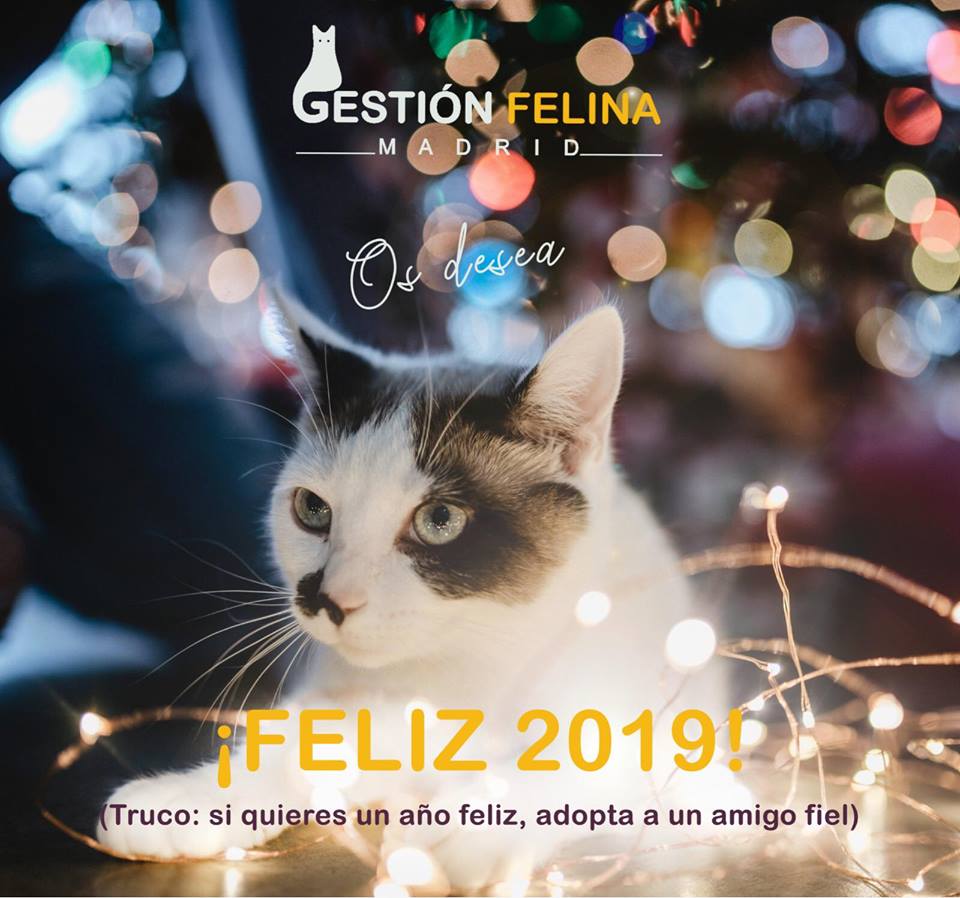 Os deseamos a todos un 2019 lleno se sorpresas, de felicidad,de encuentros gatunos,de pelos en la ropa,de mordisquitos y arañazos sin querer,de vidas recuperadas y de gatos rescatados,retornados a sus calles,sus parques,a sus hogares… porque no hay sofás para todos y todos no quieren sofá, sigamos luchando por calles seguras para ellos, refugios calientes y comederos llenos, por gatas libres de partos, por nunca más cachorros asesinados o muertos en la calle,por gatos libres y protegidos.Por un año más con la jaula trampa a cuestas.
